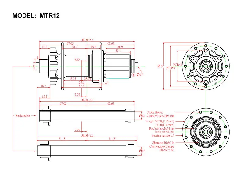 | Body | Shimano HG, Shimano Microspline, Sram XD |