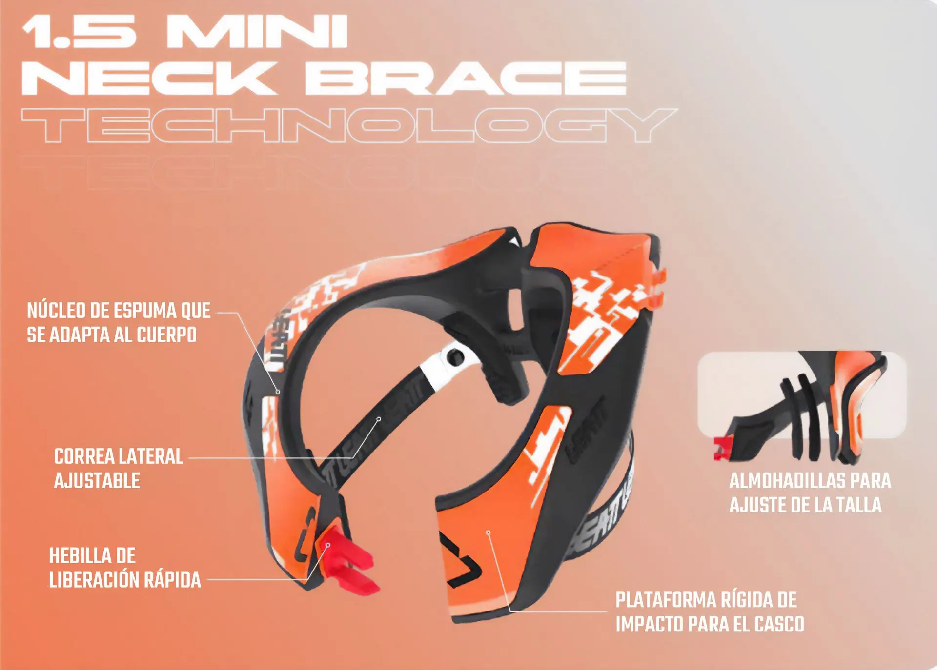 El Neck Brace 1.5 Mini ofrece a los riders más pequeños una protección cervical profesional adaptada a su tamaño y necesidades. Su estructura ligera no interfiere con el movimiento natural, permitiendo que los niños se sientan cómodos y confiados mientras montan. Además, su diseño resistente y fácil de mantener lo convierte en una pieza imprescindible para los padres que buscan seguridad, calidad y durabilidad en el equipamiento de sus hijos.
